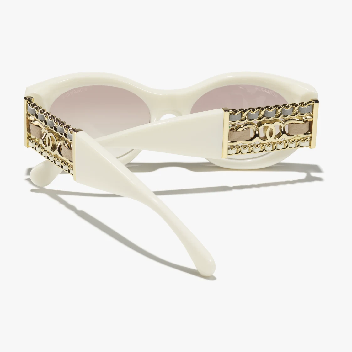 Oval Sunglasses Acetate, Metal & Calfskin Ivory. Lenses: Light Brown, Gradient