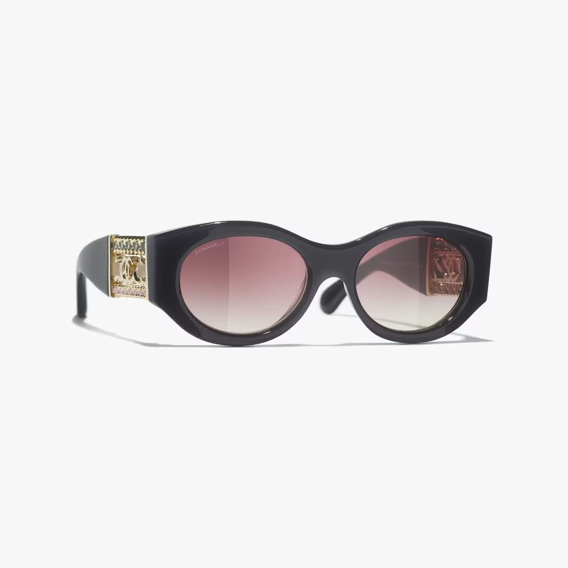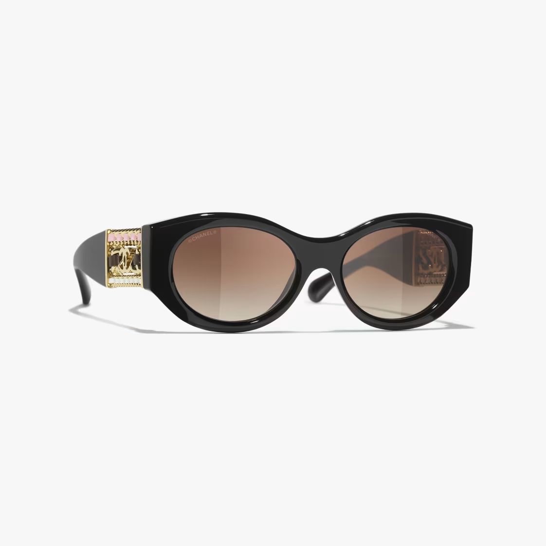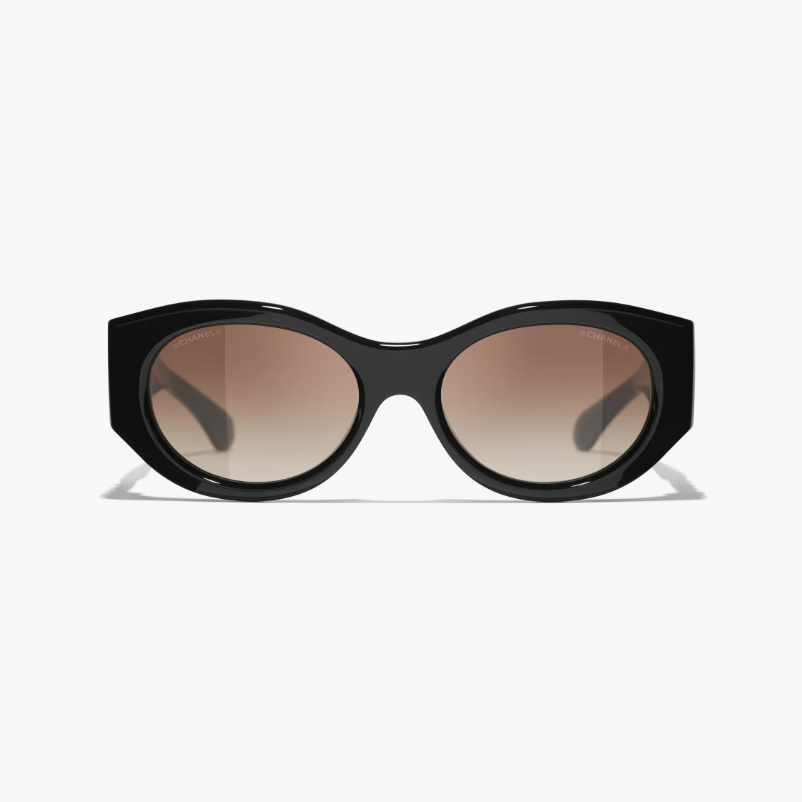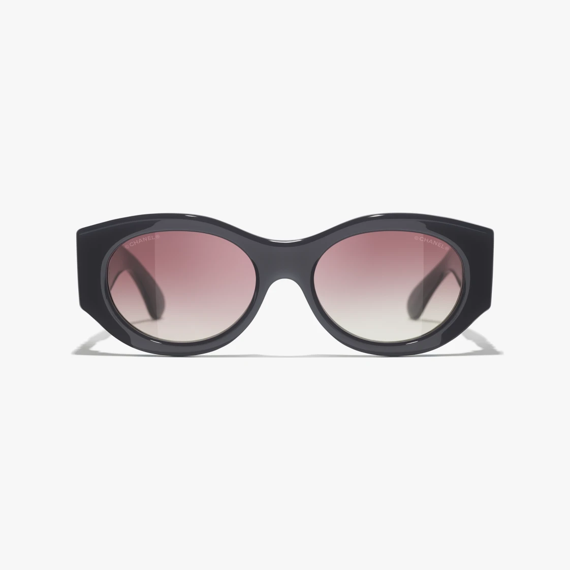 Oval Sunglasses Acetate, Metal & Calfskin Black. Lenses: Black, Gradient