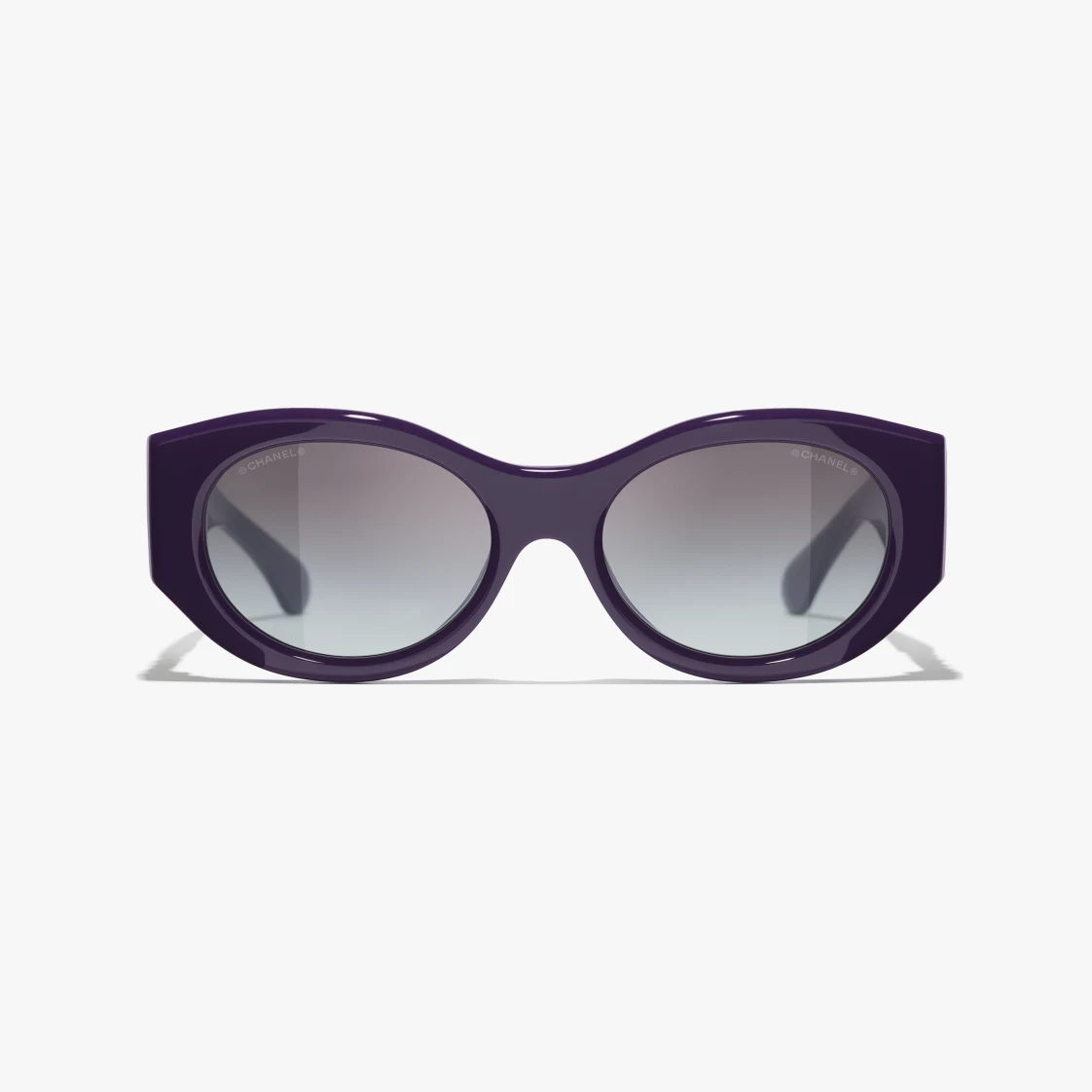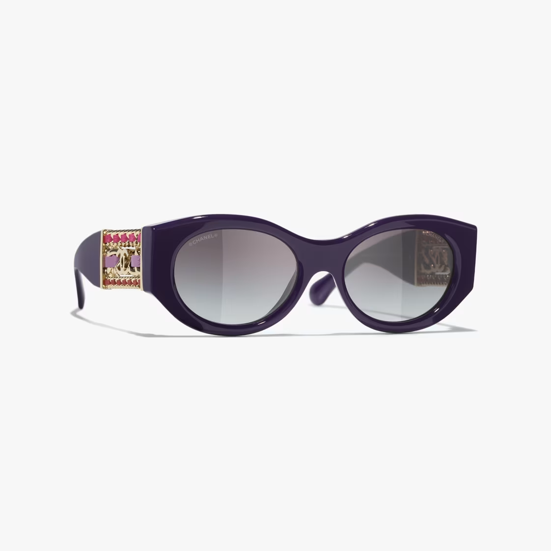 Oval Sunglasses Acetate, Metal & Calfskin Purple. Lenses: Gray, Gradient