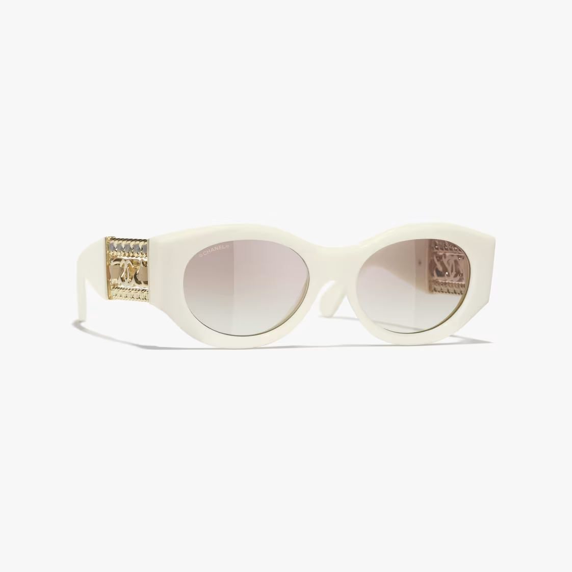 Oval Sunglasses Acetate, Metal & Calfskin Ivory. Lenses: Light Brown, Gradient