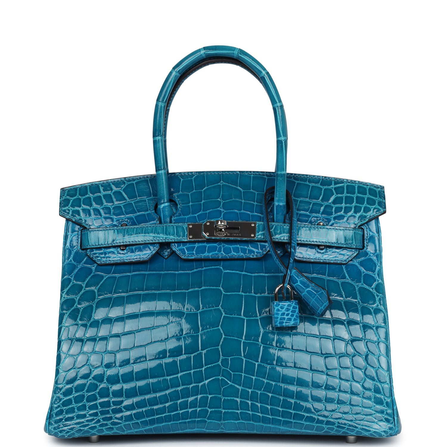 Hermès Birkin 30 Bleu Izmir Shiny Niloticus Crocodile Palladium Hardware