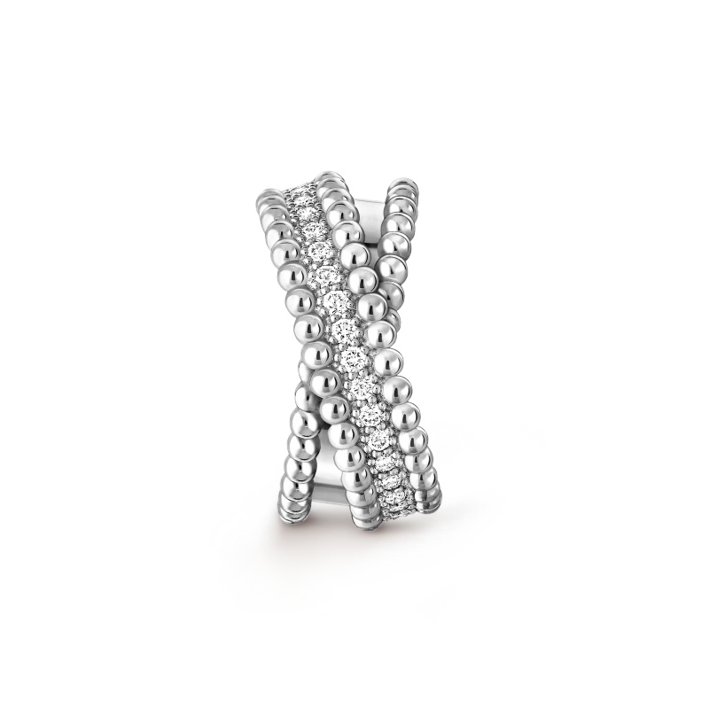 Perlée diamonds duo ring, rhodium plated 18K white gold, round diamonds; diamond quality DEF, IF to VVS