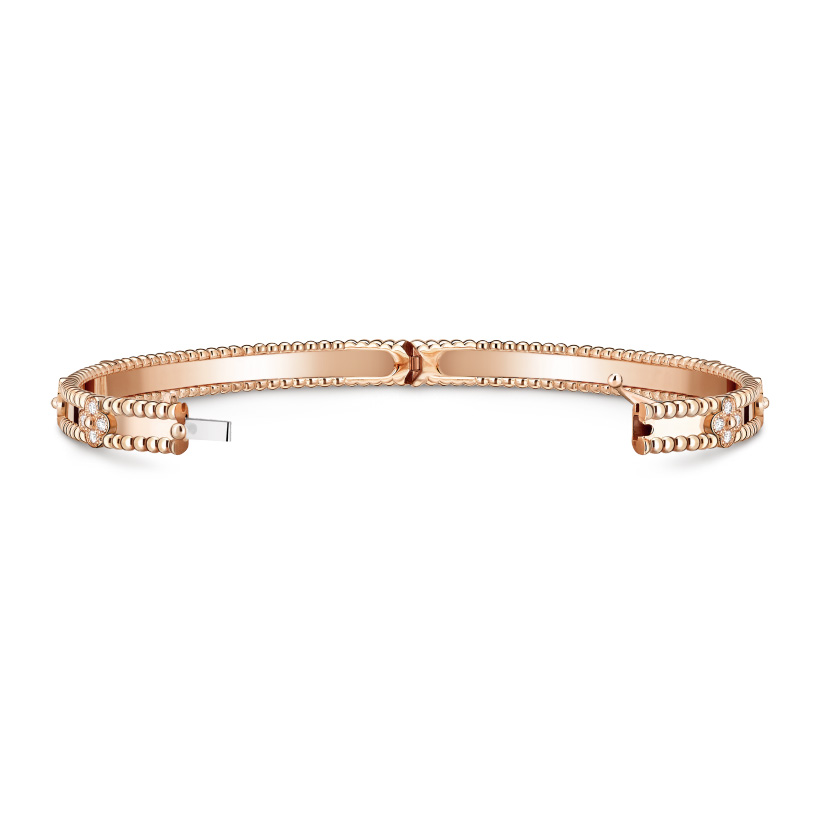 Perl茅e sweet clovers bracelet, 18K rose gold, round diamonds, medium model; diamond quality DEF, IF to VVS.