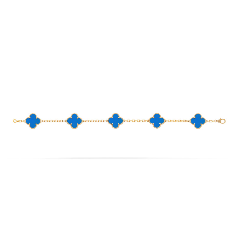 Vintage Alhambra bracelet, 5 motifs, 18K yellow gold, blue agate.