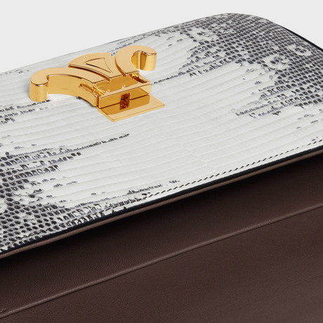 8 X 5 X 2 IN (20.5 X 11.5 X 4 CM) LIZARD (VARANUS SALVATOR) LAMBSKIN LINING GOLD FINISHING SHOULDER CARRY TRIOMPHE METALLIC CLOSURE ONE MAIN COMPARTMENT ONE INNER FLAT POCKET ADJUSTABLE STRAP WITH A MINIMUM DROP 8 IN (21 CM) AND MAXIMUM DROP 10 IN (25 CM)