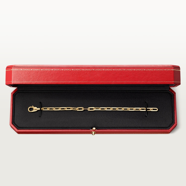 Product Description: Santos de Cartier chain bracelet 18K yellow gold (750/1000) Thickness: 2 mm Length: 192 to 205 mm (for size 17)
