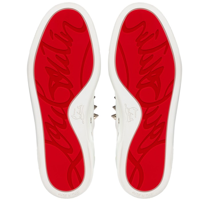The timeless F.A.V Fique A Vontade low-top sneaker enchants with its elegant details. This sneaker is crafted in white calf leather and has a rubber sole. It is embellished with tonal topstitching and signature silver spikes for an urban, modern finish. The tongue bears the Maison Christian Louboutin signature.