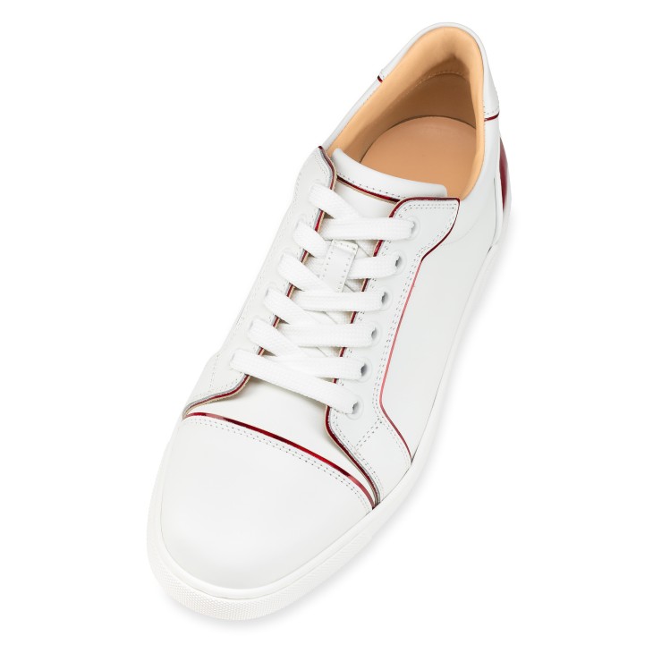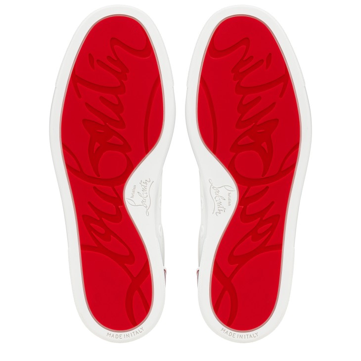 The Fun Vieira low-top sneaker sits on a white rubber sole with contrasting nude calf leather lining. With its sporty lines, it combines Bianco white calf leather, nappa leather, and Psychic Loubi red patent calf leather with iridescent hues. This model showcases Maison Christian Louboutin’s exemplary creativity, featuring the creator’s signature on the back and delicate topstitching.