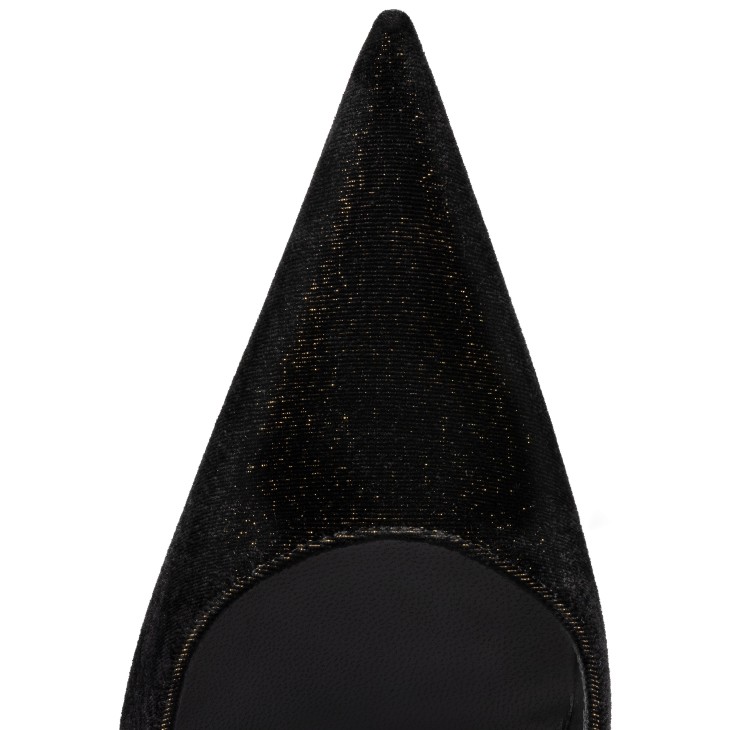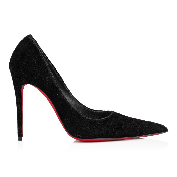 The Kate Max features elegant lines and characterises Maison Christian Louboutin’s ‘savoir-faire’. It showcases a pointed toe and signature low-cut vamp, to audaciously reveal the foot. Crafted entirely in black-gold velour, this sophisticated pump sits on a 100 mm heel. This model features a new ‘Everlasting Red Sole’ thanks to an innovative coating technique that ensures resistance and lasting vibrancy for our signature Louboutin red.