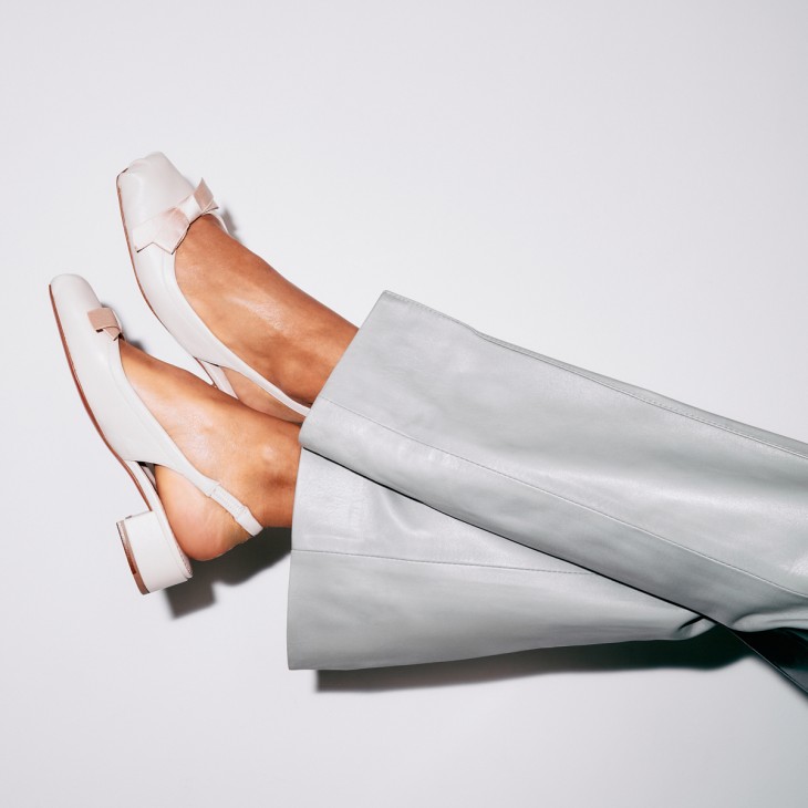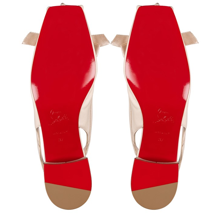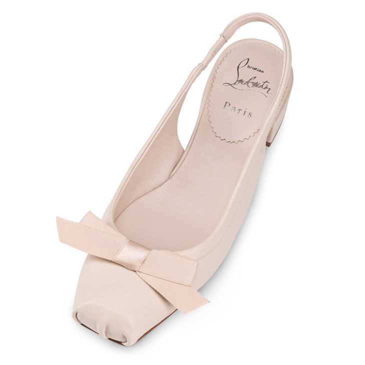 The Mamaflirt Sling ballerina pump elegantly outlines the foot with a square low-cut vamp and a contrasting curvy bow detail on the upper. This reworked version of Maison Christian Louboutin’s supple Mamadrague ballerina features a 30 mm block heel and meticulous topstitching. It is crafted in all-over soft Leche beige leather for a sophisticated finish.