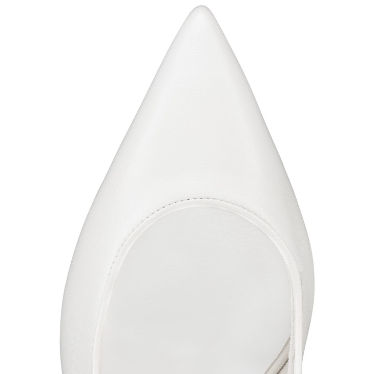 The Sporty Kate Sling pump crafted from nappa leather in Bianco white and featuring a delicate 55 mm kitten heel is the embodiment of elegance. The closed toe contrasts with the open slingback and fine stitching adorns each edge. Detailed with the iconic Maison Christian Louboutin initials and embellished with a daring Loubi red sole, this slingback makes a statement.