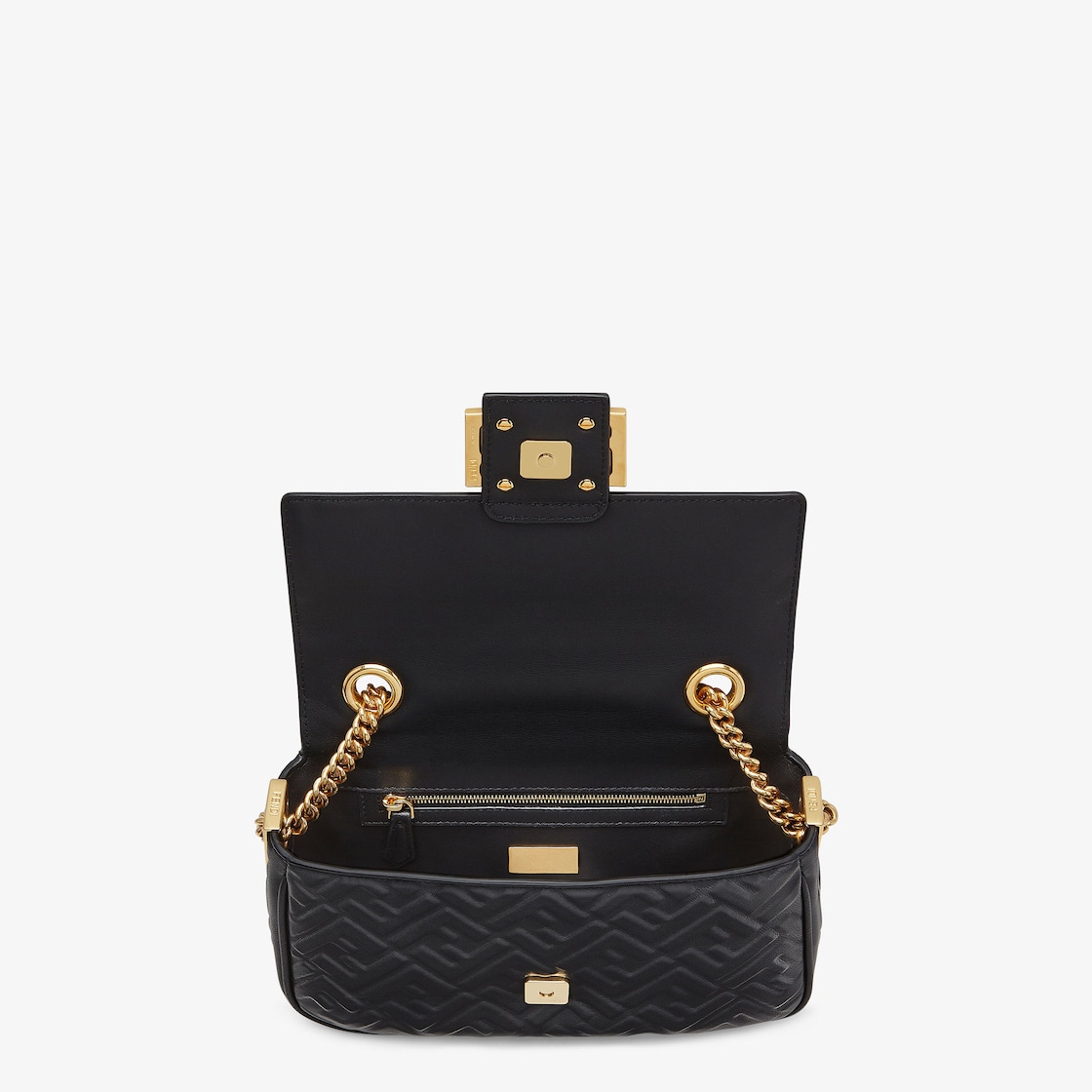 Made of soft, black nappa leather with a 3D-effect embossed iconic FF motif and embellished with an FF clasp.