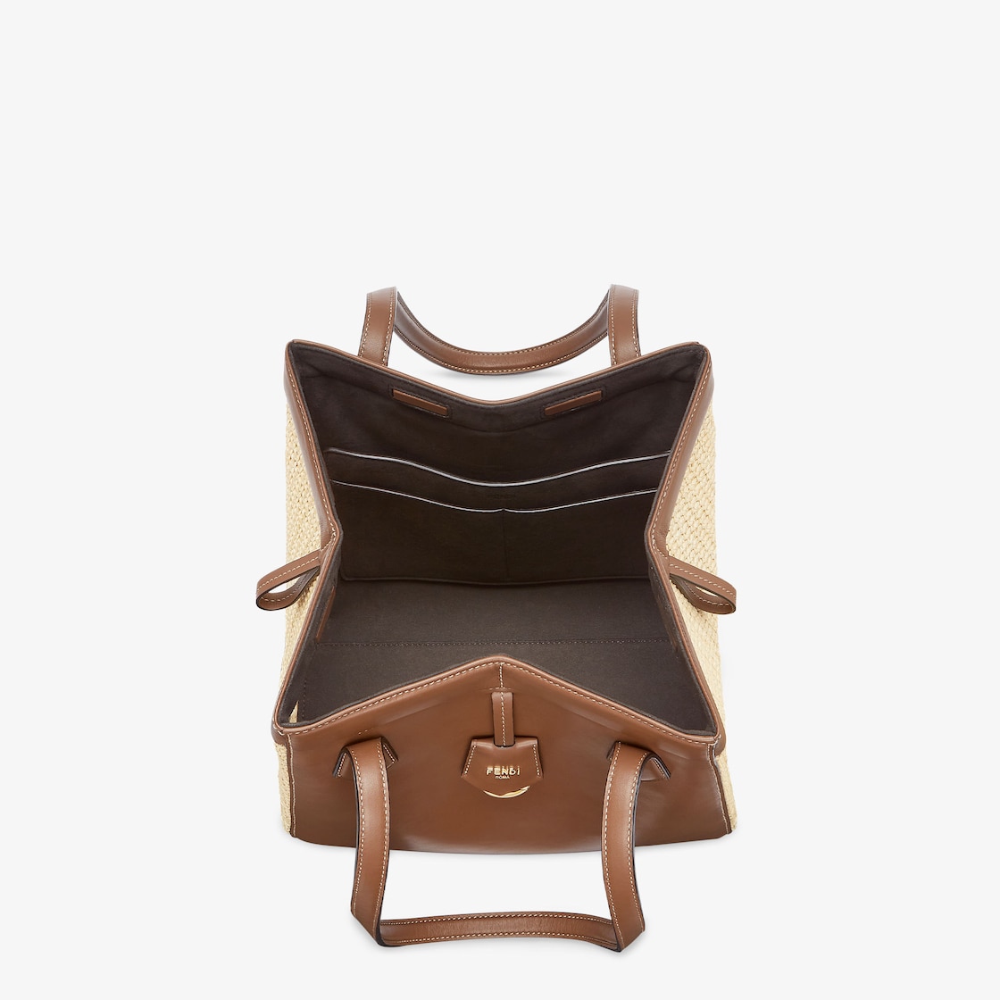 Medium Origami Bag. The style recalls the duality and creativity of Fendi with an innovative and transformable design: the ingenious closure with eight magnets means the bag can be folded, origami-style, transforming it from a bucket bag, when the magnets come together in the middle with a magic clasp, into a shopper by gently pulling the leather ties on the short shoulder straps on each side.