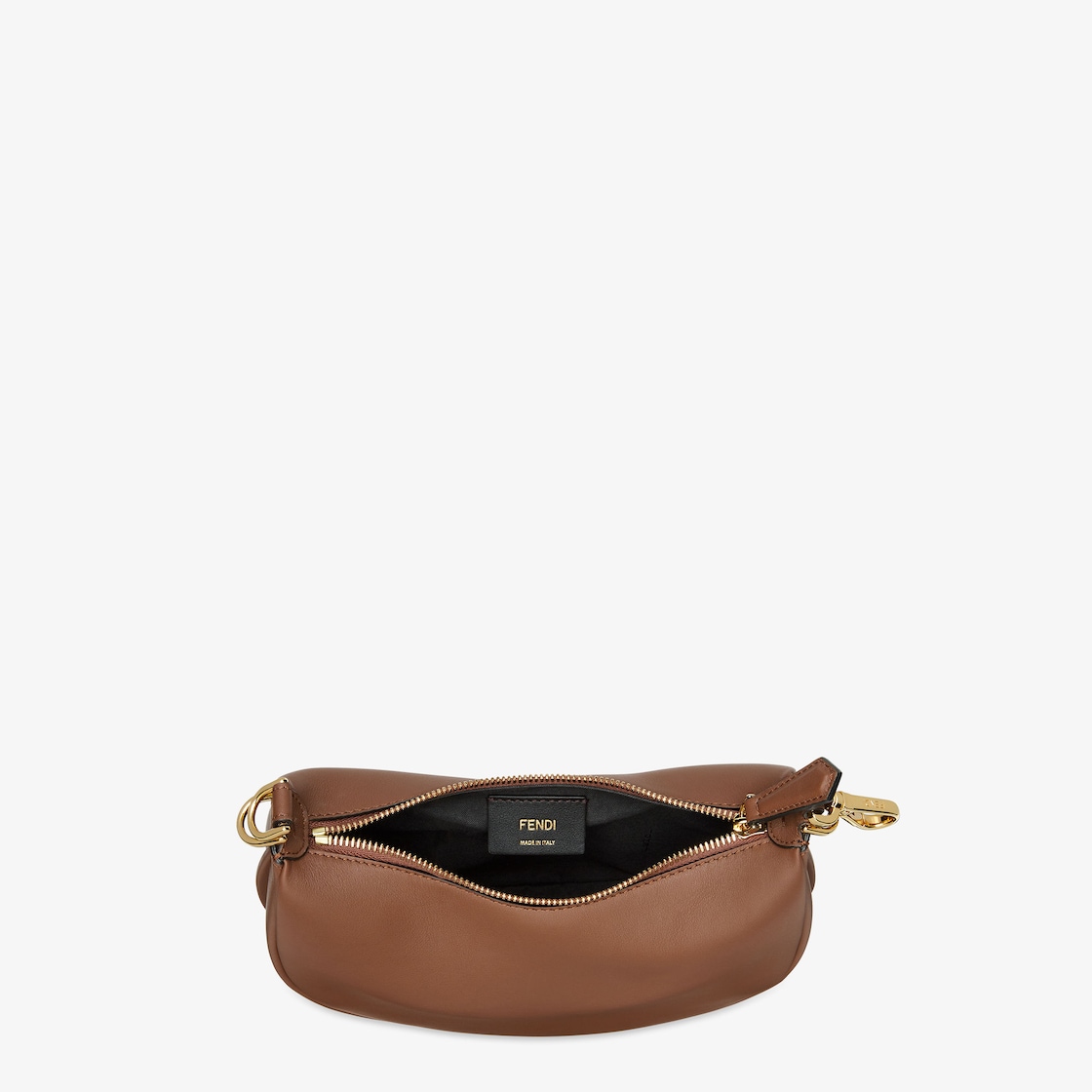 Mini hobo bag made of soft brown leather, embellished with vintage gold metal FENDI lettering.