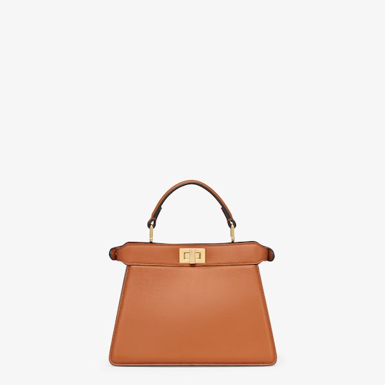 Iconic Peekaboo ISeeU bag in an ideal, compact size. Made of soft, padded, brown nappa leather and embellished with the classic twist lock on both sides.