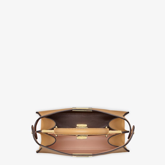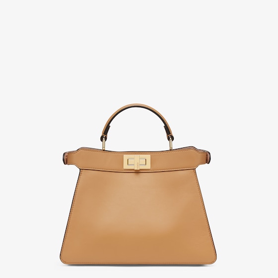 Iconic small Peekaboo ISeeU bag, made of beige leather and embellished with the classic twist lock on both sides.