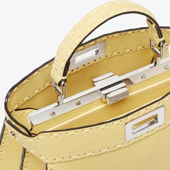 Small iconic Peekaboo ISeeU bag, made with 556 hand-sewn tone-on-tone macro topstitches, an emblem of the iconic Selleria workmanship.