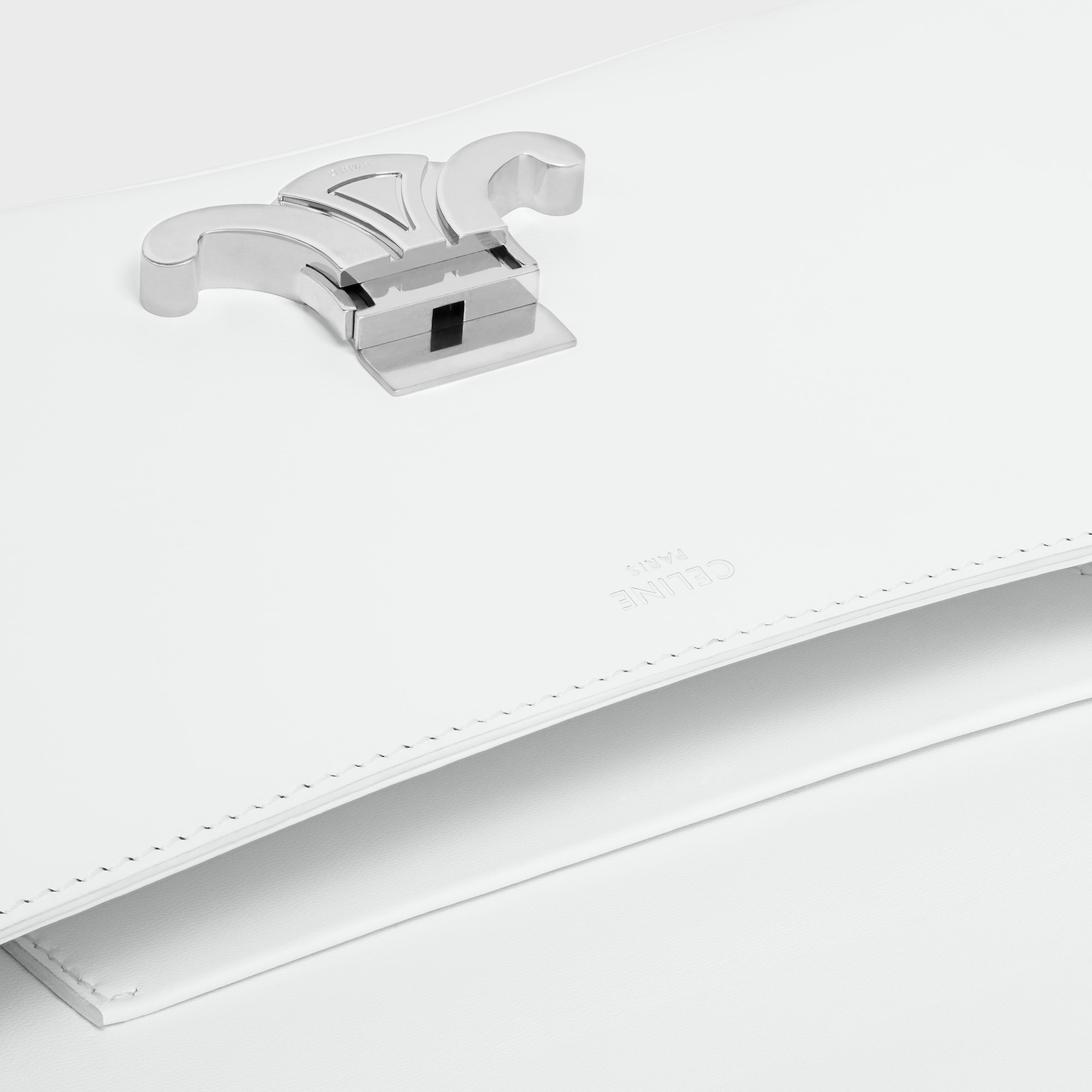 11 x 5 x 2 IN (28 x 12 x 5 CM)CalfskinLambskin LiningSILVER FINISHINGShoulder carryTriomphe Metallic Closureone main compartmentone INNER FLAT POCKETadjustable strap with a minimum drop 8 IN (21CM) and maximum drop 11IN (28 CM)