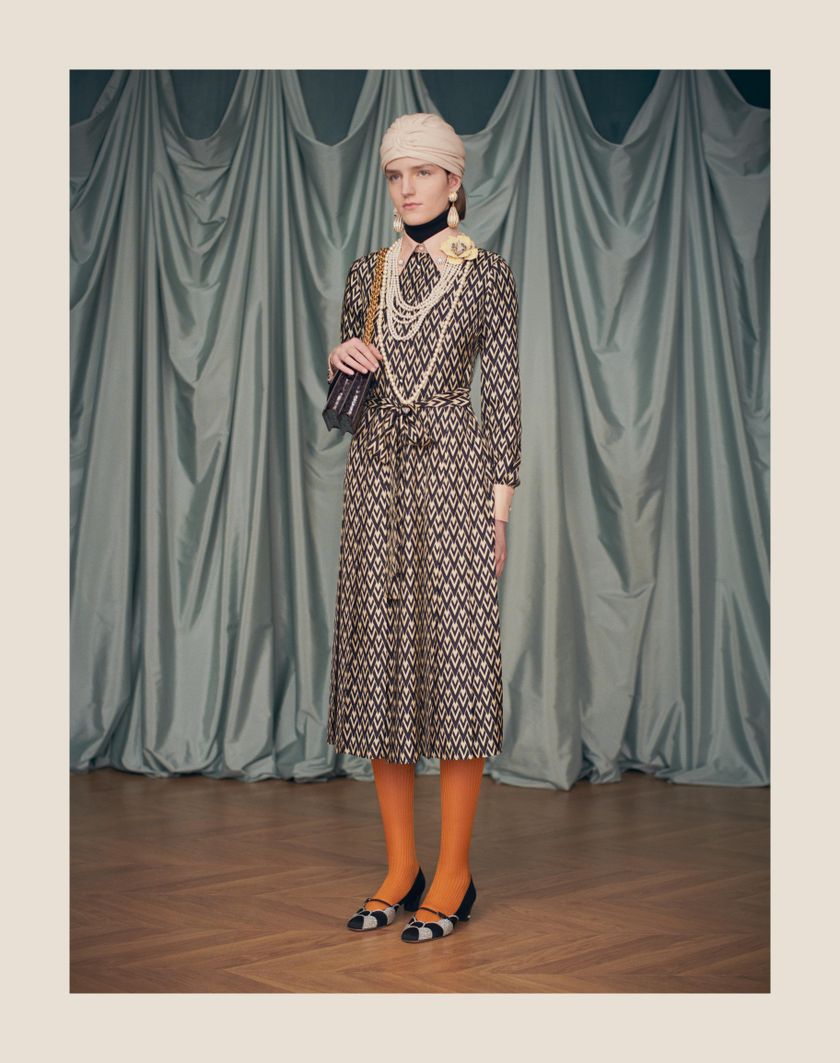 Valentino Garavani Bowow pump with strap in moiré fabric with crystal appliqués and scallop motif– VLogo Signature detail in antique brass-effect finish on heel– Custom insole with scallop motif– Heel height: 45 mm / 1.8 in.– Made in Italy