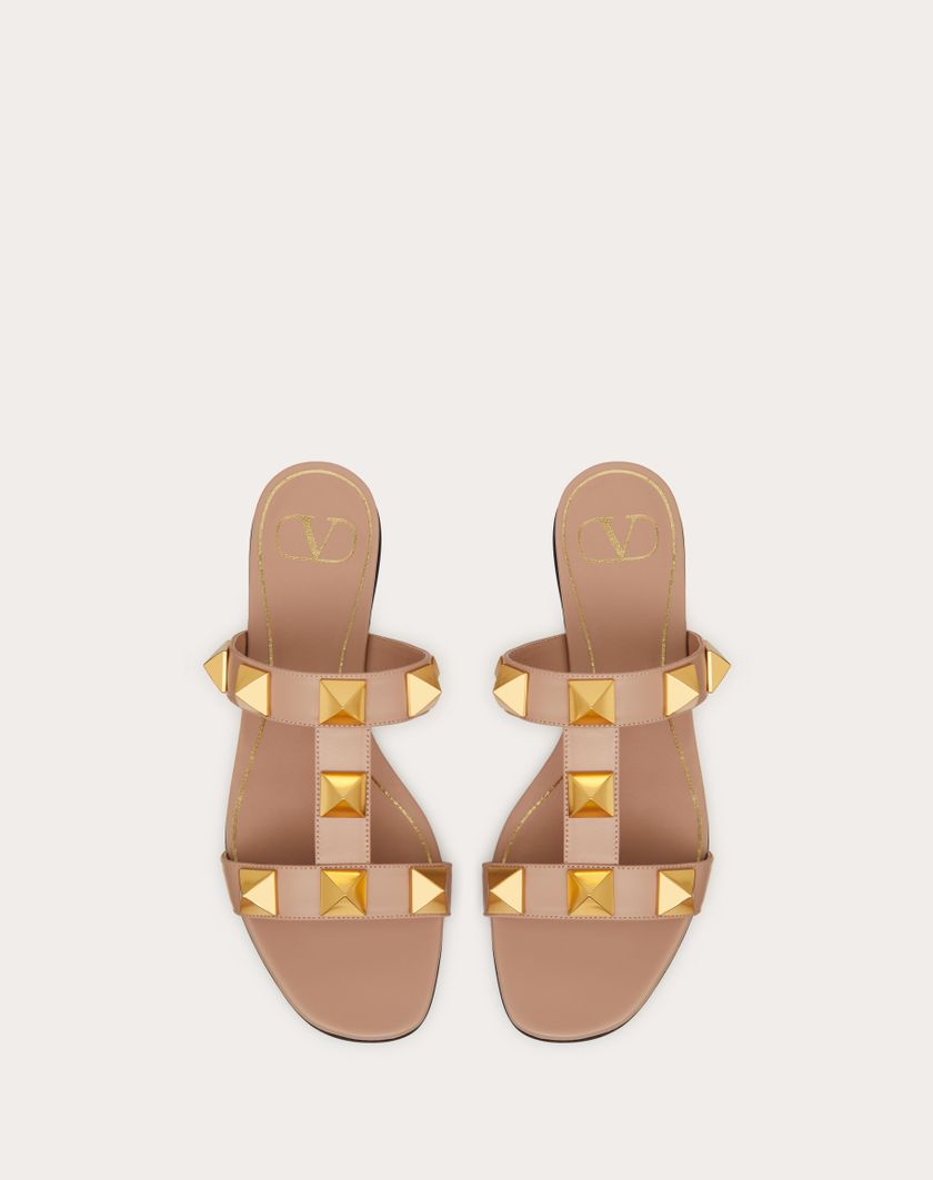 Valentino Garavani Roman Stud slide sandal in calfskin embellished with maxi studs.– 18×18 mm / 0.7×0.7 in maxi studs with antique-brass finish– Heel height: 5 mm/0.25 in.– Made in Italy