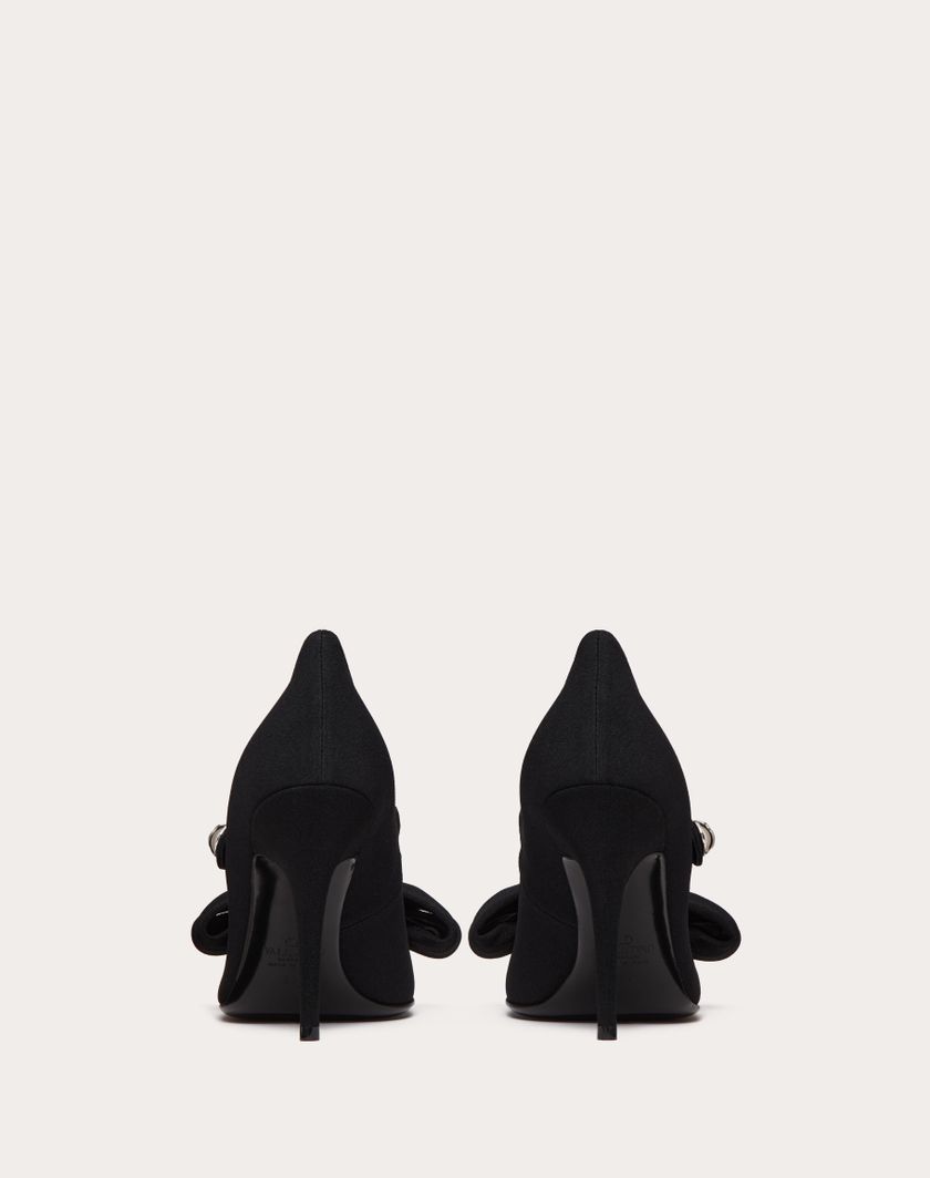 Valentino Garavani Bowjane Mary-Jane pumps in crepe fabric (100% Silk)– Bow detail in crepe fabric– Elastic strap with custom VLogo Signature decorative button in palladium finish– Heel height 100 mm / 4 in.– Made in Italy